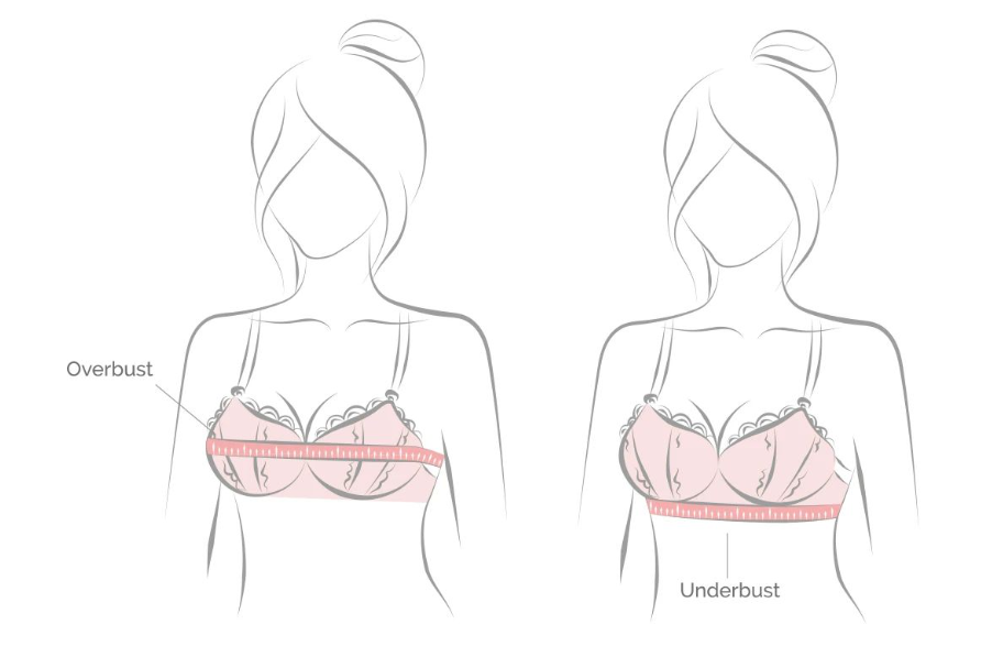 Pavyzdžiui: Biusto perimetras (105 cm) - perimetras po krūtimi (82 cm) = 23 cm, o tai reiškia krepšelio dydį "F".